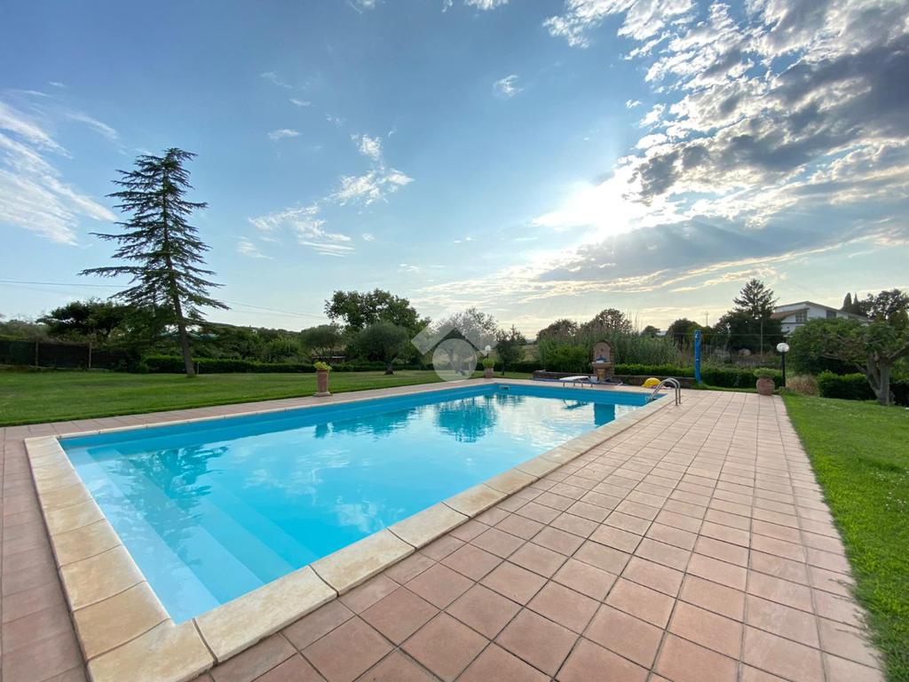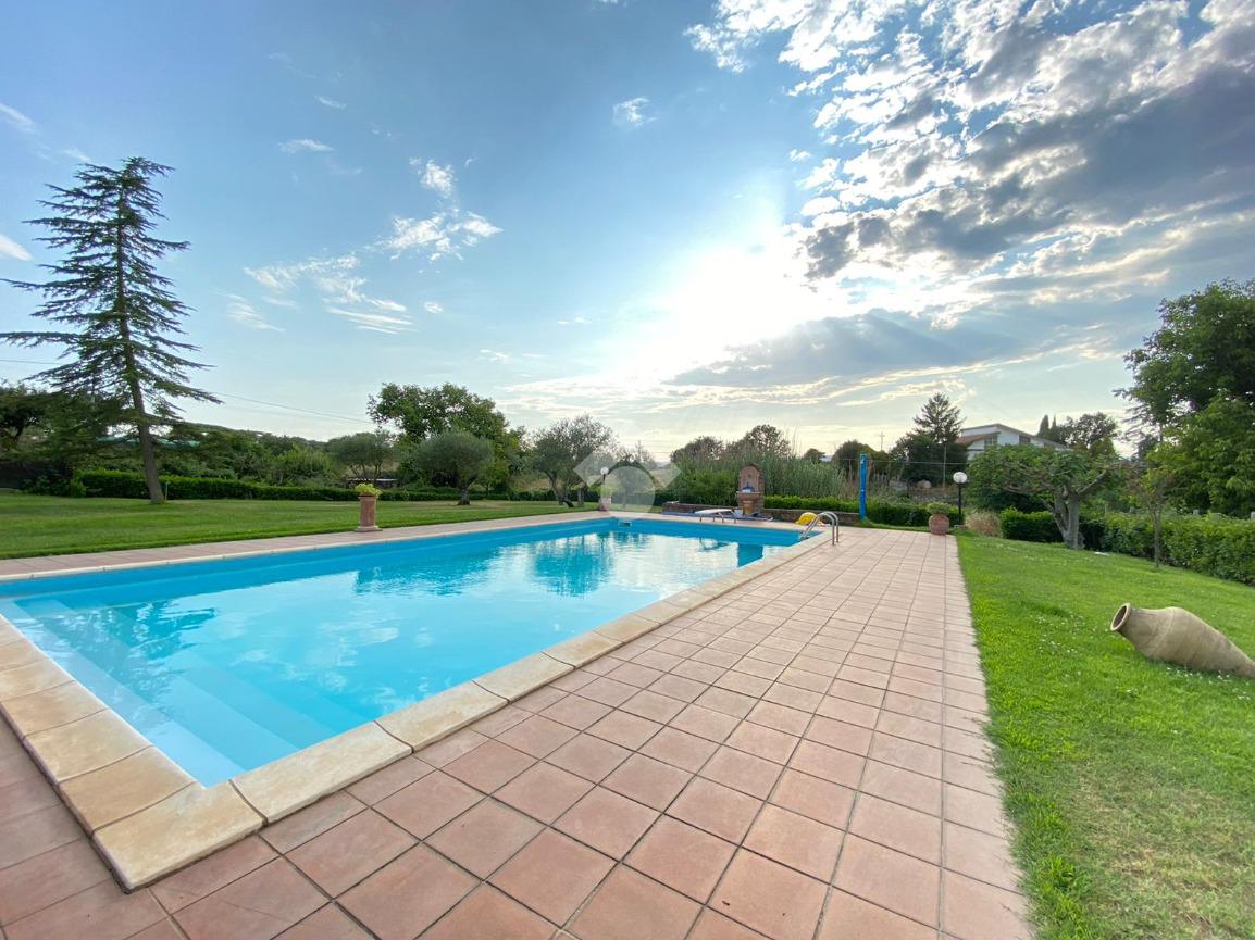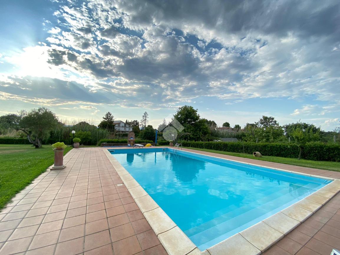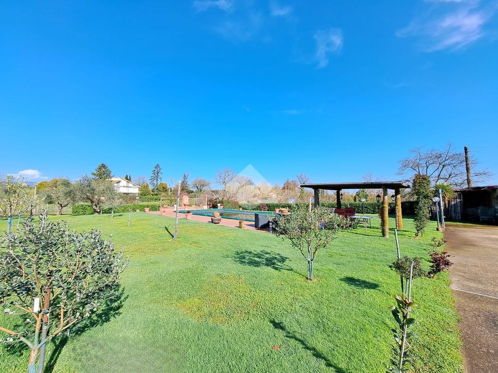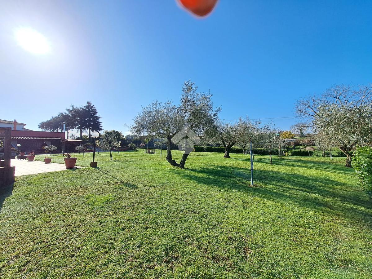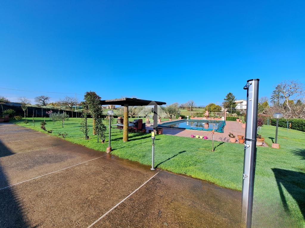 FABRICA DI ROMA / FALERI: Soluzione indipendente su unico livello con giardino privato di 2.800 mq. circa e piscina ad acqua salata. L'immobile è dotato di pozzo privato per l'irrigazione del giardino, idrostufa a legna e impianto fotovoltaico da 6 KW con batterie di accumulo. OTTIMO STATO